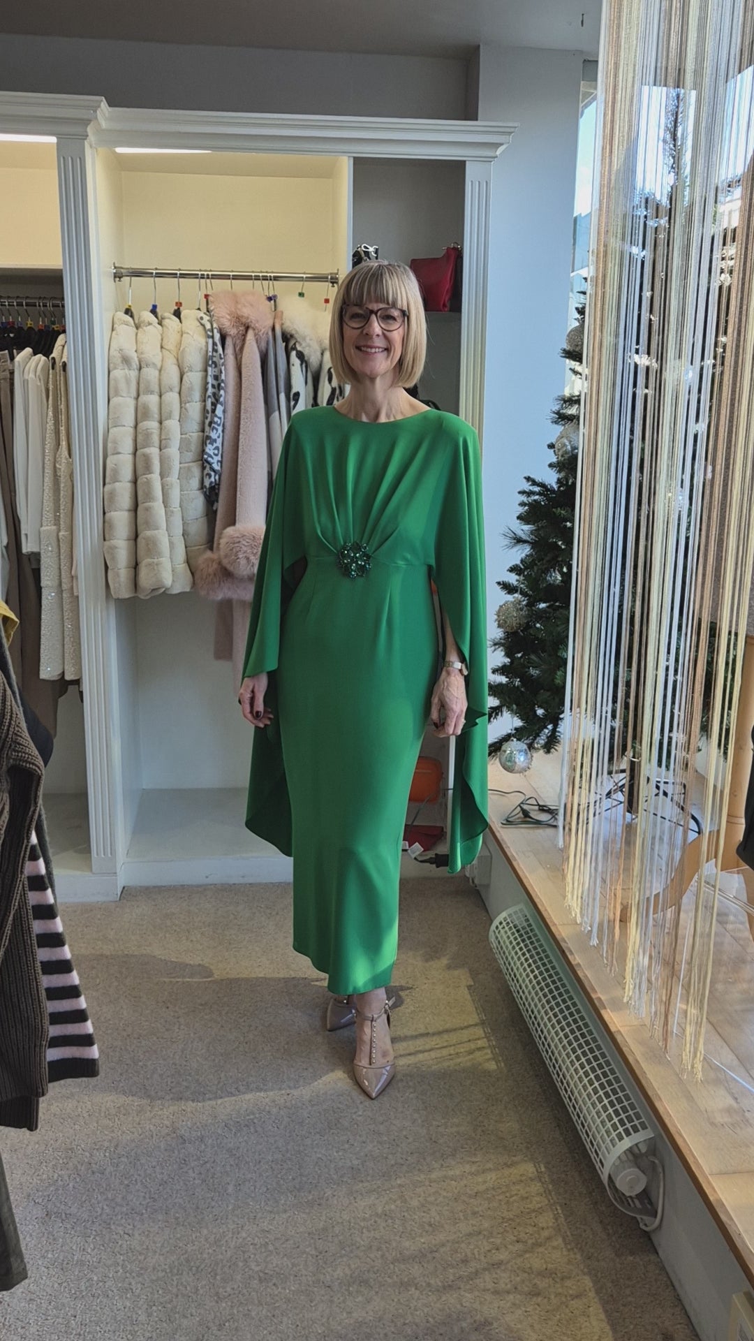 Elevate your special occasion style with this stunning caped sleeve fitted dress. The dramatic cape detailing adds a touch of theatrical glamour, while the high-waisted silhouette creates a flattering, elongated line. A jewelled waist catches the light beautifully, drawing the eye to your best features. Perfect for weddings, celebrations, and moments worth dressing up for—this dress transforms you into the most elegant version of yourself. A showstopper that whispers sophistication while turning heads.